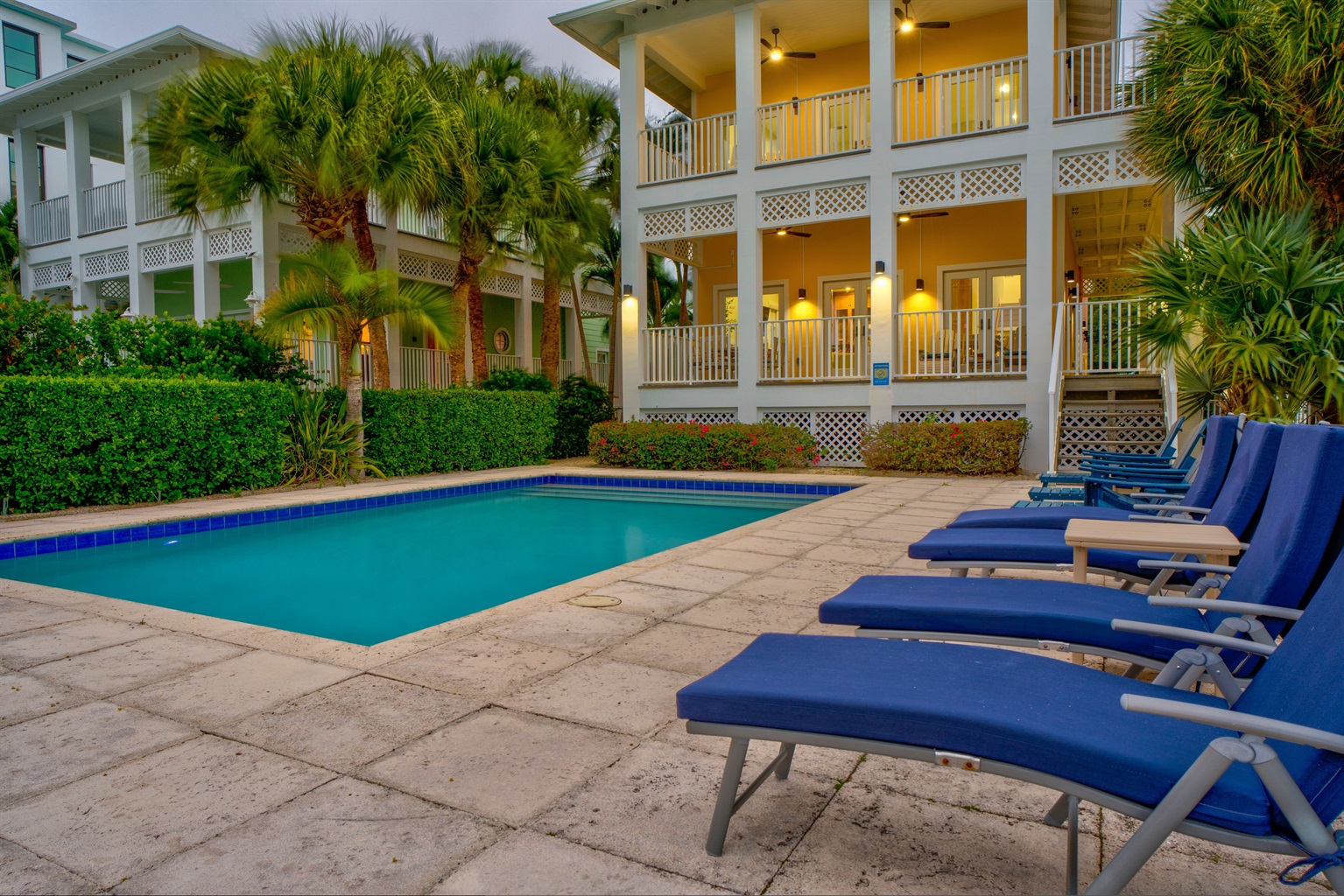 You’ll have 4.5 bathrooms total, making mornings and post-beach rinses easy for groups. Two bedrooms feature ensuite bathrooms, plus there’s two hall bathrooms by the bottom-level bunk room and off the hall by the upper level bedrooms—and a convenient exterior bathroom in the poolside gazebo for effortless pool days. Each bathroom is fully stocked with body wash, shampoo, conditioner, and all essentials to keep your stay comfortable.