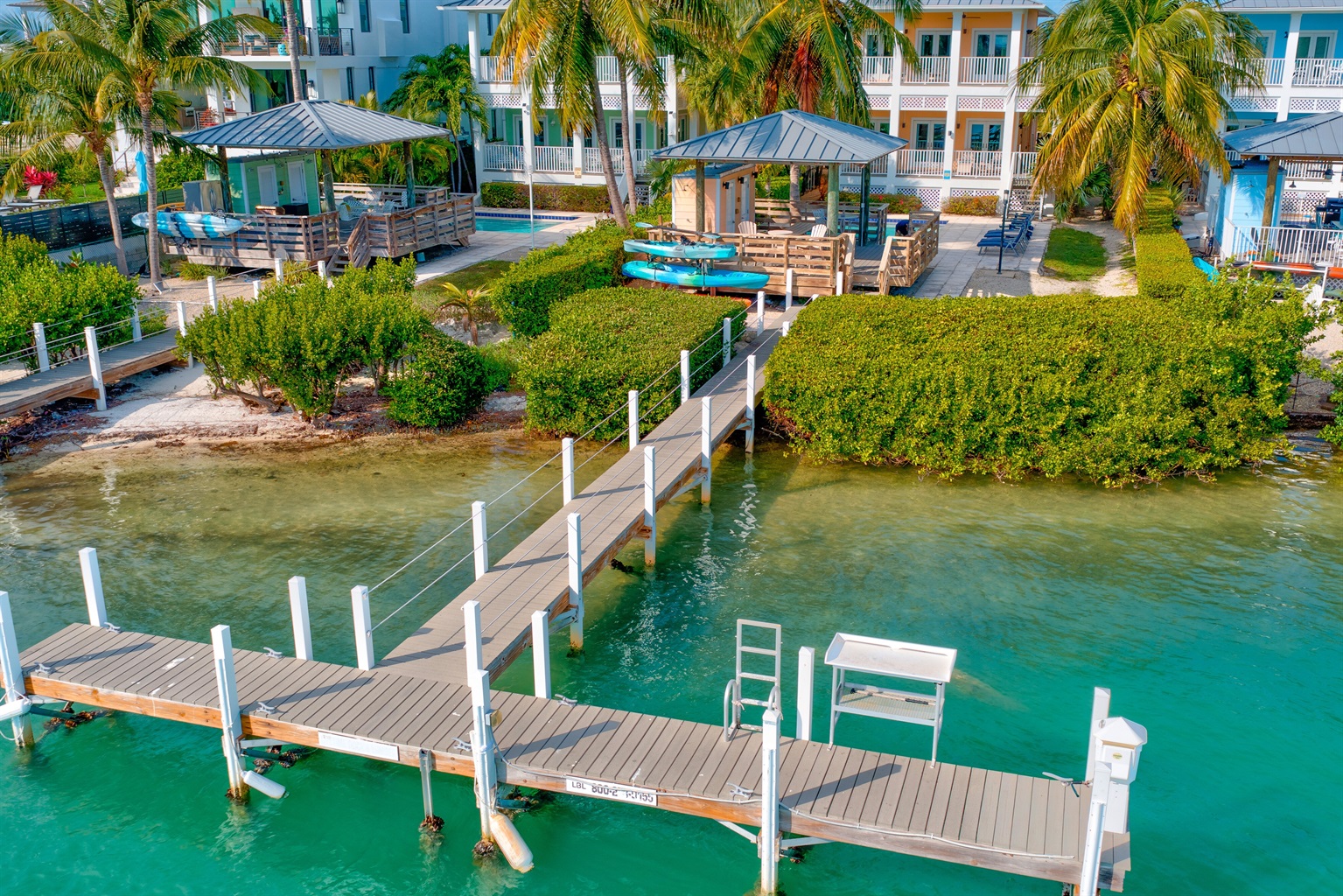 Florida Keys living shines here: a wraparound covered porch/balcony for morning coffee and sunset chats, plus a private backyard built for making memories. Spend your days in the huge pool, relax in the gazebo, and love the convenience of the poolside exterior bathroom. Out back, the home opens to a wide canal with gorgeous water views, and your pier-style dock is ready for your boat (or a rental). Prefer a slower pace? Grab the included kayaks and explore right from home. Out front, you’ll have parking for up to four vehicles (or three vehicles + a boat trailer).