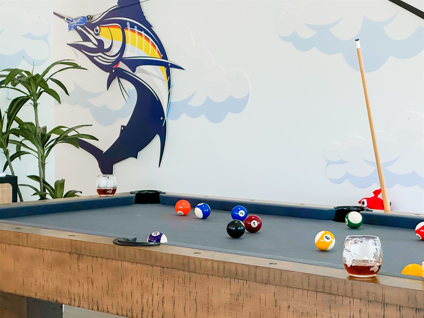 • 2 game rooms including a pool table, Infinity Game Table, and Smart TV