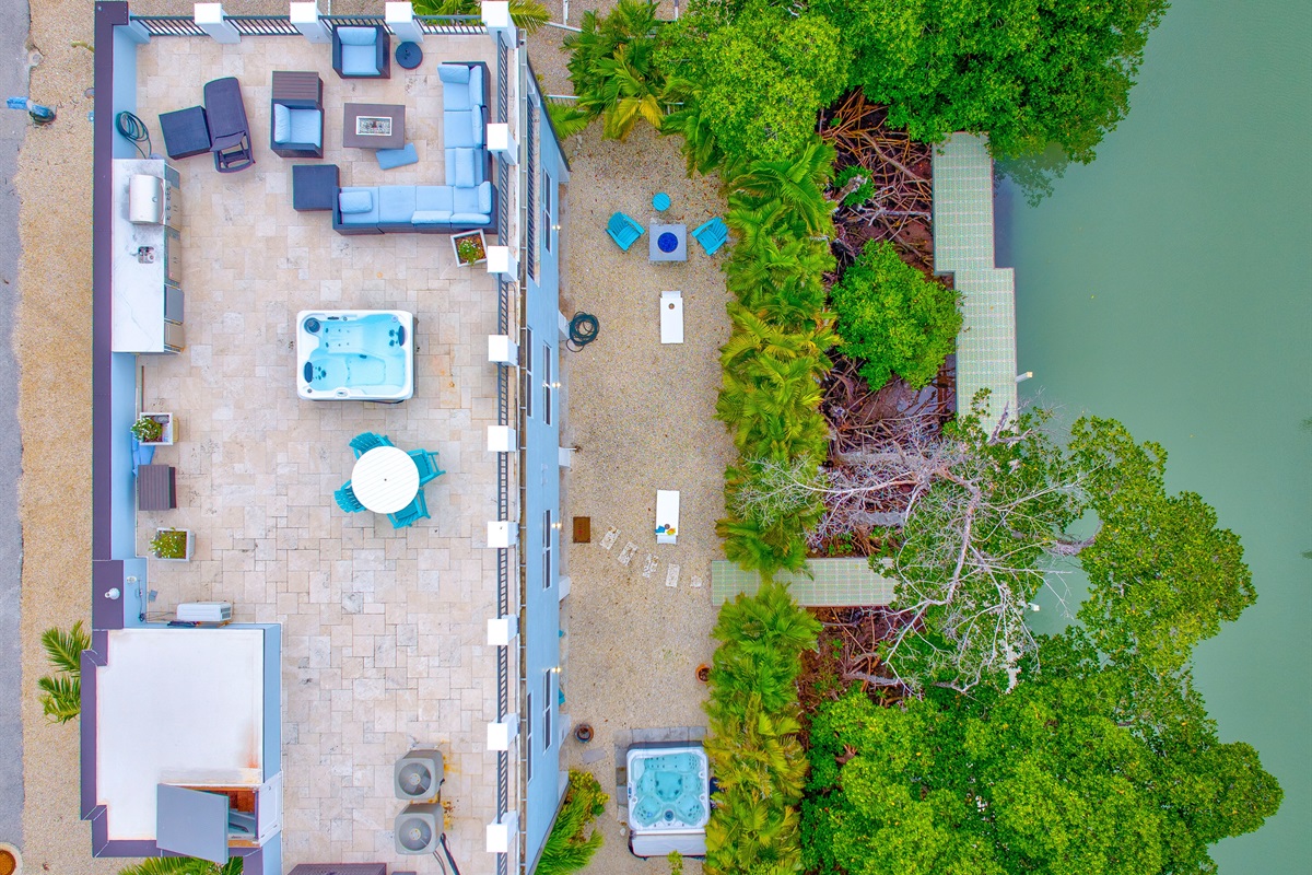 Step into Captain's Rooftop serene outdoors, a lush landscape where manatees may visit.