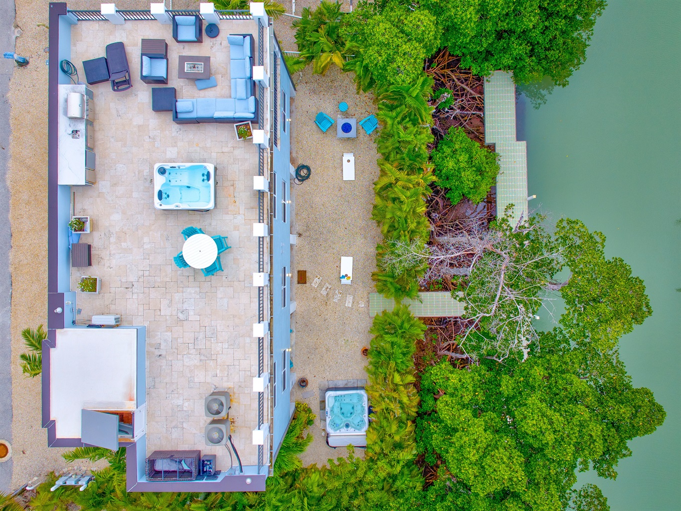Our private backyard oasis, complete with a large hot tub, offers a tranquil setting for repose. The 75 ft dock invites you to set sail on boating escapades, complemented by the mangrove jungle, enhancing the adventurous ambiance.